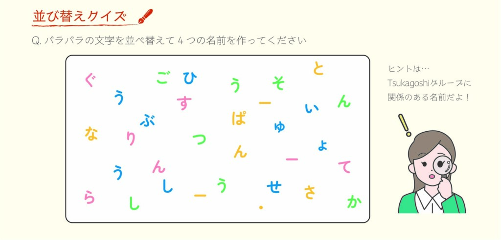 ヒントはTsukagoshiグループに関係のある名前ですよ!