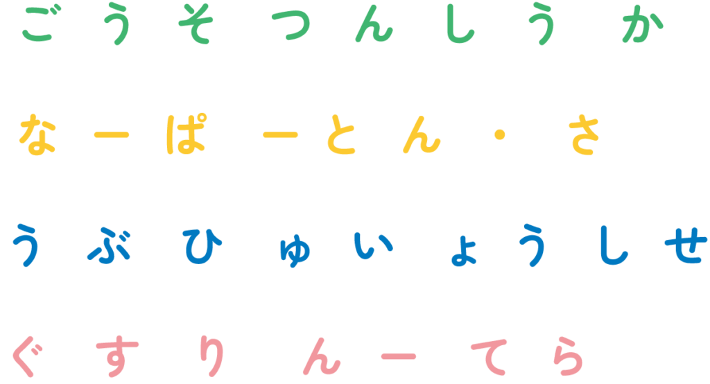 バラバラになった文字を繋ぎ合わせて、4つの名前を作ってみてください♪