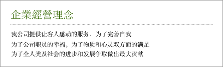 作为一个与区域性紧密相关的国际性物资流通体系公司、我们时常谨记、我们的不足之处、作为公司的传统秉承至今。