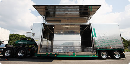 2008年8月,本公司通过引入了先进的温调全空气悬挂款卡车,从而能够应对大型半导体、液晶、太阳能电池制造装置的运输。